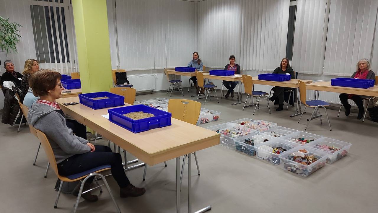 Auch im Gemeinschaftsraum, wo sich die Kinder vor und nach dem Sandspiel aufhalten, werden Engagierte benötigt. Die innere Haltung im Gemeinschaftraum unterliegt den gleichen Regeln wie im Sandspielraum. Auch hier wird für die Kinder ein sicherer und zugleich freier Raum geschaffen. Der Unterschied ist nur, dass hier mit den Kindern gesprochen wird. Es werden keine Spiel- oder Bastelaktionen angeboten, aber auf Initiativen der Kinder, z.B. gemeinsam zu spielen, eingegangen. Die Kinder benötigen diese Zeit, um sich auszuruhen oder auch um wieder in Bewegung zu kommen. Im Gemeinschaftsraum entsteht dadurch für die Kinder ein Übergang in den Alltag, wo sie körperlich und seelisch genährt werden.